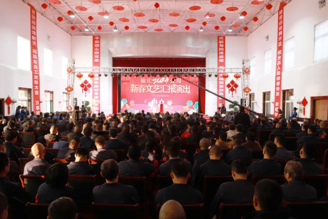 伴随着一曲喜庆热闹的开场舞《欢聚一堂》,演出正式拉开序幕。公司党委书记、董事长杨柳青上台致辞,向莅临现场观演指导的各位领导、企业界同仁、各位股东、员工及家属表示诚挚的欢迎和衷心的感谢,并向大家送上新春的美好祝福。他表示,过去的一年,榆化在改革创新中不断成长,牢牢守住了生产经营的基本盘,各产品产量再创历史新高。大胆进行经营改革,带来了可观的经济效益。完成了部门精简、岗位优化,设置更加科学高效;完成了人员二次分配,建立了后备人才库制度,初步形成了人才梯队建设精准培养体系。与太药控股签订战略合作协议,诺氟沙星试产成功,药品生产许可证顺利重新取证,原料药项目有序推进,高质量转型迈出坚实的一步。展望未来,市场环境依然严峻,但未来的发展也充满机遇,无论市场如何变幻,榆化人奋斗的脚步绝不停止。全体干部员工要精诚团结、笃行实干,主动担当作为,大胆改革创新,争当传统化工企业改革提质高质量转型发展的排头兵,开启百亿榆化、百年榆化的新篇章,为县域经济发展做出新的更大贡献。