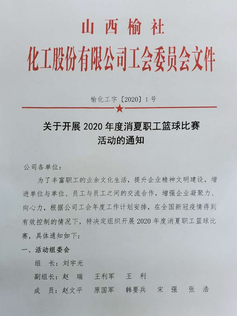 关于开展2020年度消夏职工篮球比赛活动的通知