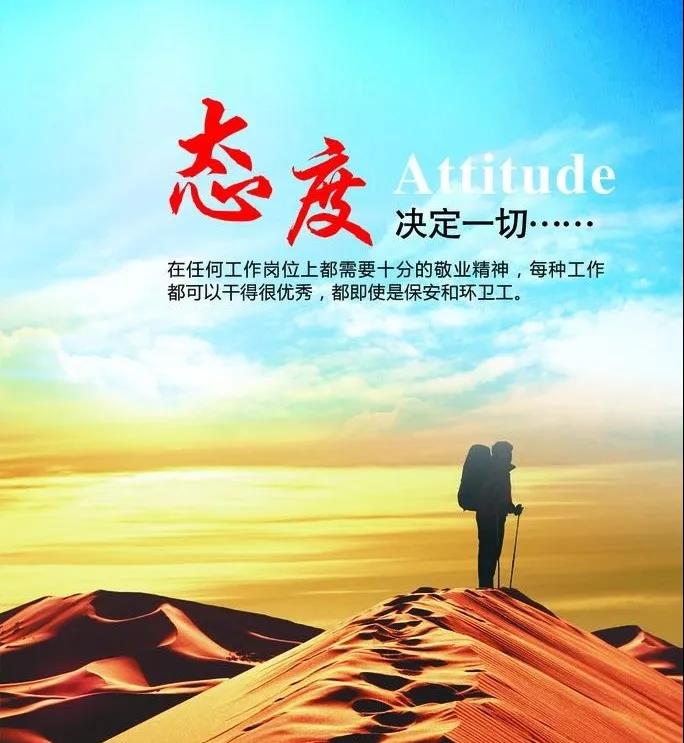 “态度决定一切,细节决定成败。”态度是什么?细节又是啥?我认为态度就是我们每个人对待每件事情的不同看法。细节则是可能影响事情结果时每一步不起眼的小事。总之一个人的成败,态度是最重要的一把钥匙。
