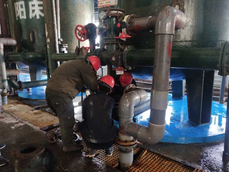 2月17日,公司安排一厂区停车,旧化水利用这次机会,把系统上的阀门拆检52个,更换8个,检查捕捉器9个,配合新项目留甩头5个,清理莲花池水塔,清理酸碱废水池。为期3天的检修,但因为它的特殊性,停的迟,送的早,还得保证各分厂消防用水的供给,旧化水的停车检修时间其实只有一天,时间紧,任务重,但是在领导的合理安排下,旧化水工段按时完成了停车检修任务。