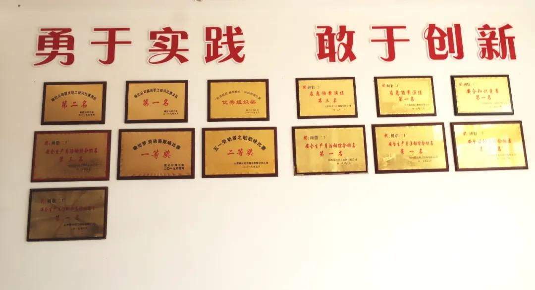 走进树脂二厂的办公楼,映入眼帘的是一尘不染的楼梯与干净的犹如镜子的地面,但是最最吸引你眼球的一定是两面墙上悬挂着的锦旗和钉在墙上的奖状。它们代表的是树脂二厂的骄傲与荣誉。