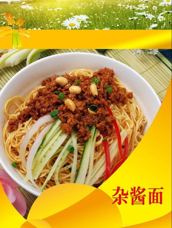 中午不知道吃什么?简单啊!和一碗面,而且一定要和成拉面才好,最好再有点肉丁,配上土豆丁、豆腐炒个炸酱(没有肉的话,番茄鸡蛋也不错啊),水开之后下面起锅装盘,浇上炸酱拌起,就可以开吃了。而且千万要大口吃,用不着细嚼慢咽,拉面的劲道加上炸酱的肉汁香味大口咽到肚子里时,你怎可能还会有一丝的不满足呢?只会感觉刚才的忙碌都是值得的。