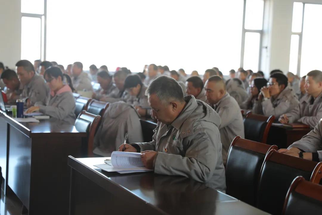 最后,党委办王利从员工关爱、项目建设、经营管理三方面进行了分析。宣讲中简述了在董事长上任后,一切举措都从员工利益、股东利益、公司利益出发。2017年8月21日会议指出“员工工资、名声不允许践踏”。2019年10月15日会议指出“长远考虑员工利益,每年300元浮动工资。”今年4月26日出台了员工“不降薪、不放假、不裁员”的文件。面对今年如此的严峻形势下,董事长明确表示只要有1元利益,就给员工发放效益奖。这对我们员工来说是多么的幸福。