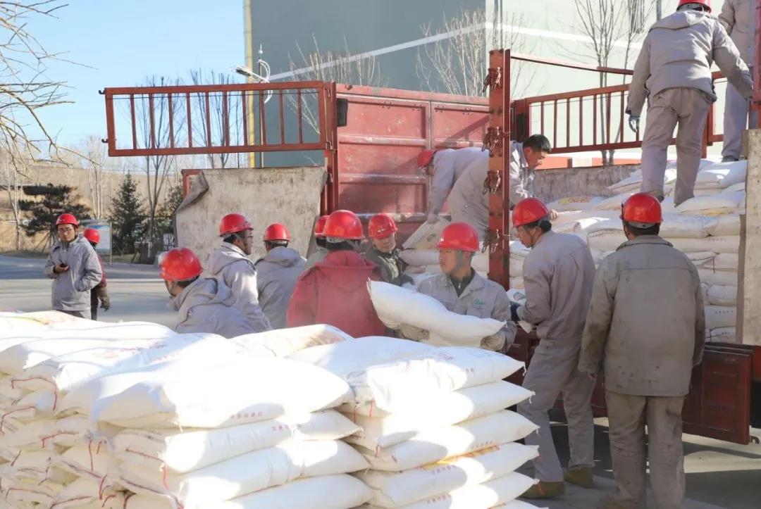 驱车至公司树脂二厂时,门口车辆早已排成了长龙,不时有同事们手提或肩扛着米面昂首匆匆走过,还有的同事自发三五人合作用手推车满载高过人顶的米面说笑着缓缓而行,更有人将家里电动三轮车驾来拉米面的,不时有人过去求其帮忙连自个儿的米面拉上,而驾车人则神气十足的说道:“满了满了,拉不下了!”好不容易停好了车,未进厂区就已望到树脂二厂办公楼前米面整齐的码成了好几个长垛,各工段负责人在旁对领取者逐一登记,一切都进行的井然有序。我由于车停的较远,还帮一位同事领取,大米还好,四袋白面着实让我累的够呛,扛着白面在寒风中渐渐浑身觉得燥热起来,心里也跟着暖和起来了。