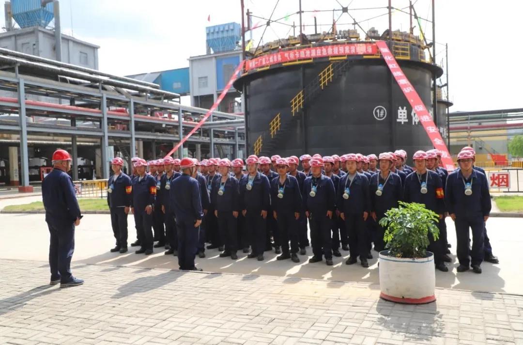 今年树脂一厂针对“气柜泄露事故”进行了消防应急演练,厂领导班子制定了相应的演练方案。分厂中层干部与各个工段的钳工、焊工、仪表工、电工参加了这次演练。演练开始前,调度用对讲机通知各岗位演练开始,正常操作,避免惊慌。
