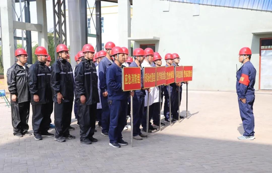 应急演练中,安全科科长冯东对参演人员详细讲解了灭火器的正确使用方法、防化服和空呼的正确佩戴、各类消防器材的正确使用方法及火场逃生和自救的相关知识。大家按照应急演练方案要求,开展实地演习,模拟火灾事故现场进行应急演练实操活动。