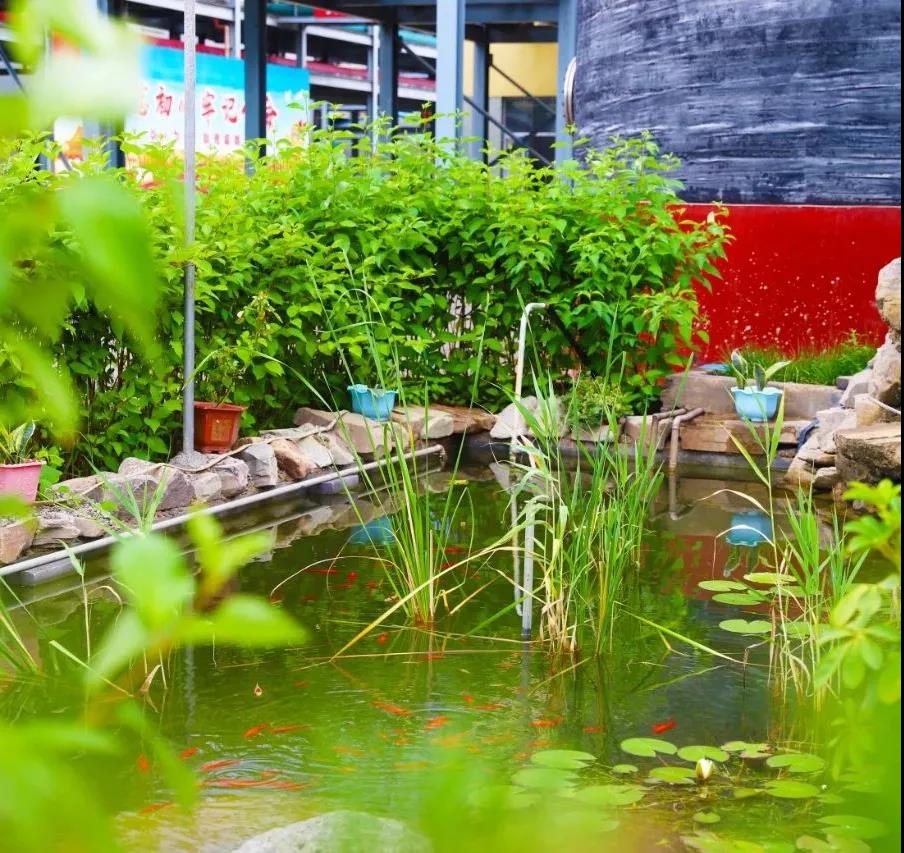 其次,在厂区内的角落里,还有人工建设的鱼塘,仿佛世外桃源一般,也仿佛是水上乐园。它的周围是一座假山,假山下面是小小的鱼塘,小鱼在里面欢快的游着,水面上还开着美丽的睡莲,那样的娇艳欲滴,此时真想搬着小凳子,拿着钓竿在鱼塘边垂钓。清澈的水流从假山上面飞泄而下,哗啦啦的水声让人暂时忘记了工作的疲惫。到了晚上,鱼塘上面闪烁着美丽的灯光,悠闲的小鱼在水面游出粼粼波光。那座假山,那片鱼塘,好像是大自然的鬼斧神工,让人驻足,流连忘返。