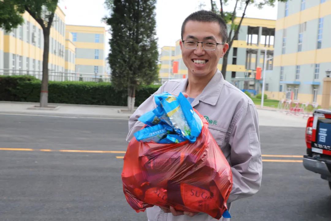 不仅公司对我们关怀入微,而且分厂也是处处为员工着想。在树脂一厂有个幸福一角,放置着一个大大的热饭柜,让带饭的我们吃上了热乎饭;为让员工能喝上干净水,采购了净水机和热水器;为破碎岗位修建洗澡间,让他们在工作完后,可以洗去一身的灰尘,干干净净回家。一人有难,全员支援。前段时间,厂里组织大家给身患重病的同事李宝和杨建斌的妻子进行捐款。这一桩桩、一件件,满满的幸福感萦绕在我们每个人心间。