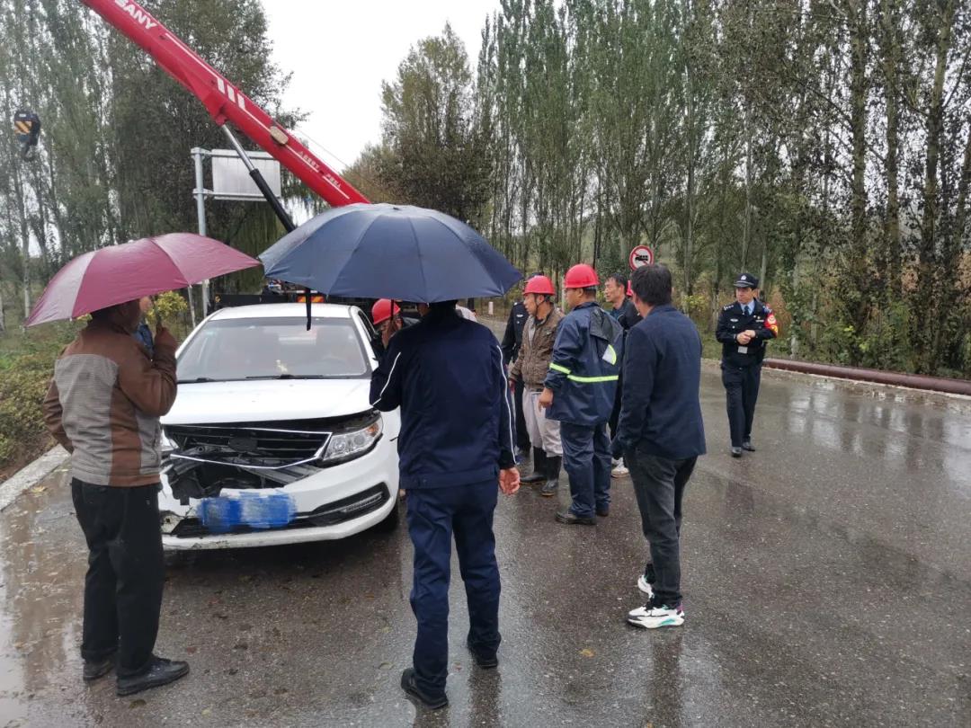10月5日,滂沱大雨倾盆而下,赶往上大夜的员工苗师傅,在滨河路拐弯时,由于雨天路滑,加上车内视线不好,不慎将车滑落潭村桥下,幸好无人员伤亡。一大早,电化厂领导得知情况后,立即组织救援,马上联系吊车司机,组织了检修车间干部、四位钳工,拿了两根吊带,在最短的时间内赶往事发现场。