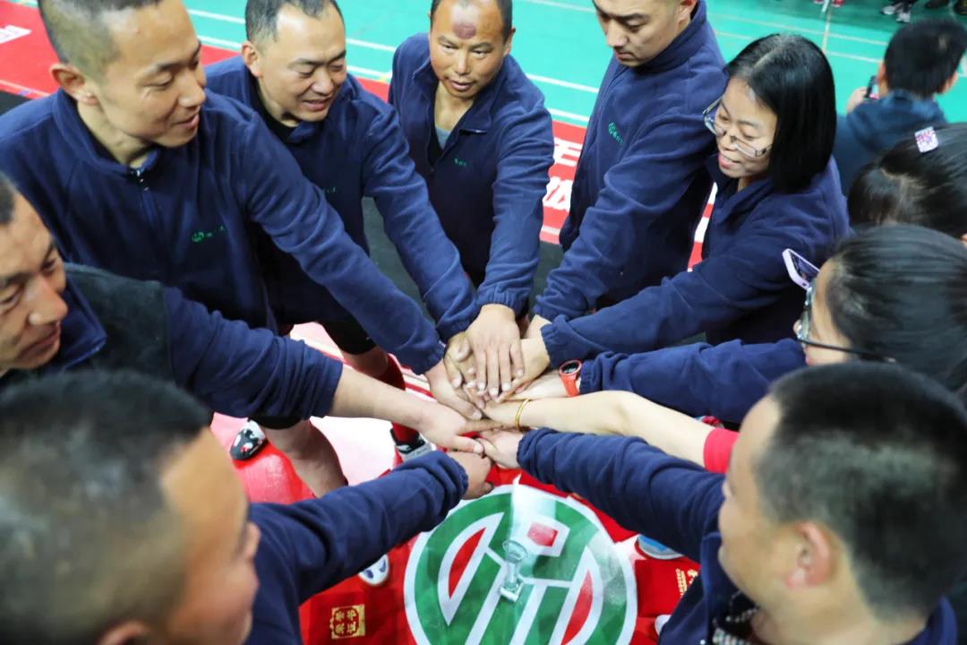 本次拔河比赛的竞赛项目为混合组600公斤级,比赛采用循环对决的方式进行,各参赛队员团结一心,半躺身姿,随着有节奏的加油声使出浑身力气拖拽长绳。在上午循环赛中,榆化拔河队率先拿下“六杀”,紧张精彩的比赛赢得了观众阵阵喝彩。在经过一天11轮的激烈比拼后,“榆化杯”拔河争霸赛圆满落下帷幕,我公司代表队胜利斩获第二名。公司董事长刘俊,副董事长、财务总监杨柳青亲临现场观战,为参赛队员加油鼓劲!