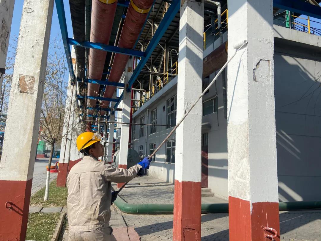 各工段在安全生产的前提下,从绘制墙面文化、油漆管架、粉刷墙体、柱子等方面开展美化亮化厂区工作。一幅幅创意新颖、色彩亮丽的妙手丹青呈现在人们面前。每幅文化墙或惟妙惟肖或活灵活现,再加上恰和时情的题字,激人奋进的标语总能给人一种眼前一亮的惊喜。