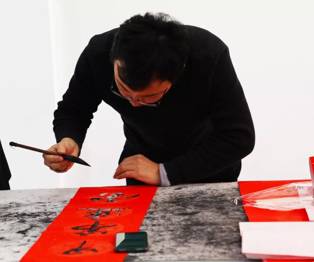 活动现场 “书法家”们一个个笔走游龙、各展所长,一句句充满吉祥与祝福、苍劲又灵动的毛笔字跃然于纸上。刚刚写出的春联,墨迹未干,便被大家“抢”到了手中,员工被气氛感染,拿起笔扬扬洒洒也写了起来。