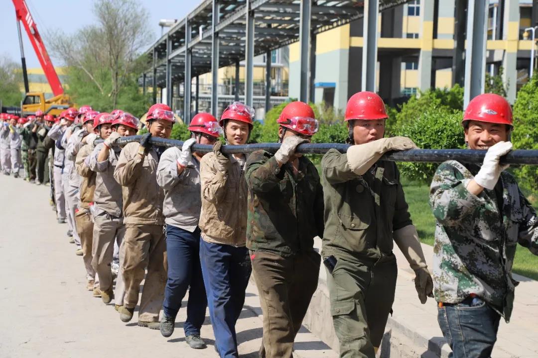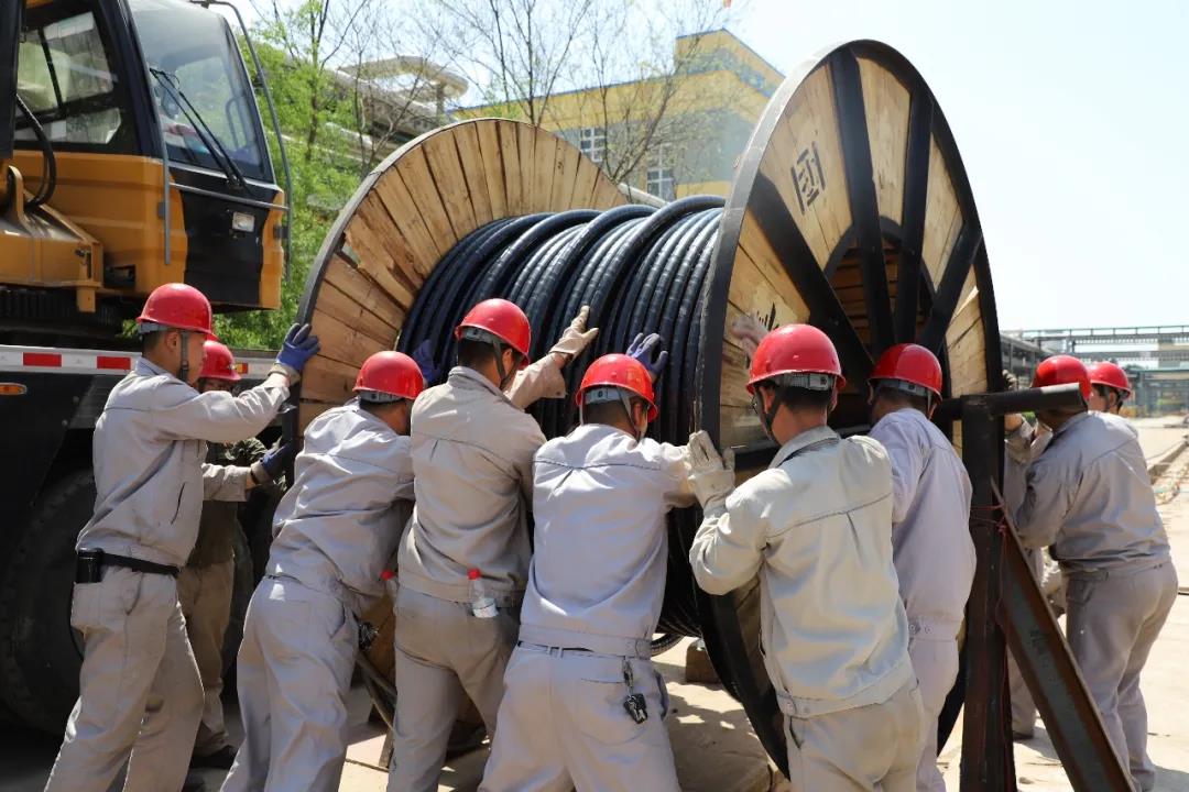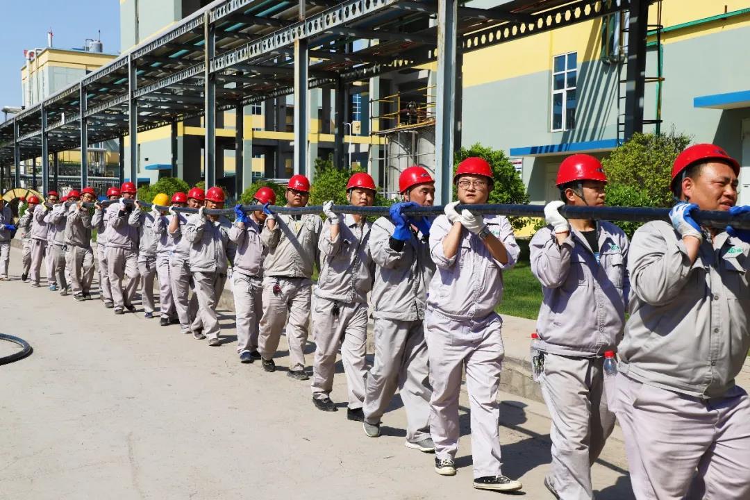 为进一步推进热电联产项目建设,公司在“五一”假期期间组织各分厂员工进行拉电缆义务劳动。本次电缆敷设从热电联产项目配电室至1#110KV变电站新配电室,配置1100米电缆12根和730米电缆6根,共计17580米,从6个分厂抽调员工3000余人次,仅用5天时间完成全部任务,比原计划提前2天。