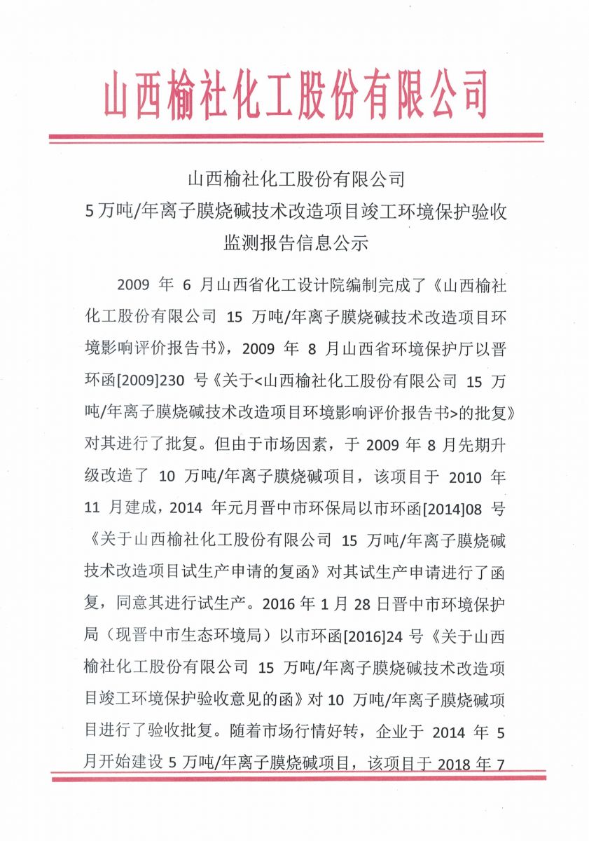好博在线5万吨/年离子膜烧碱技术改造项目竣工环境保护验收监测报告信息公示