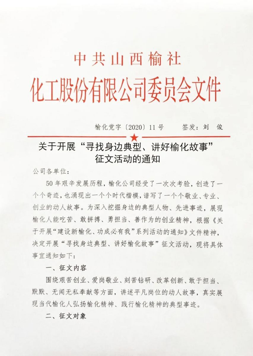 《关于开展“寻找身边典型、讲好榆化故事”征文活动的通知》