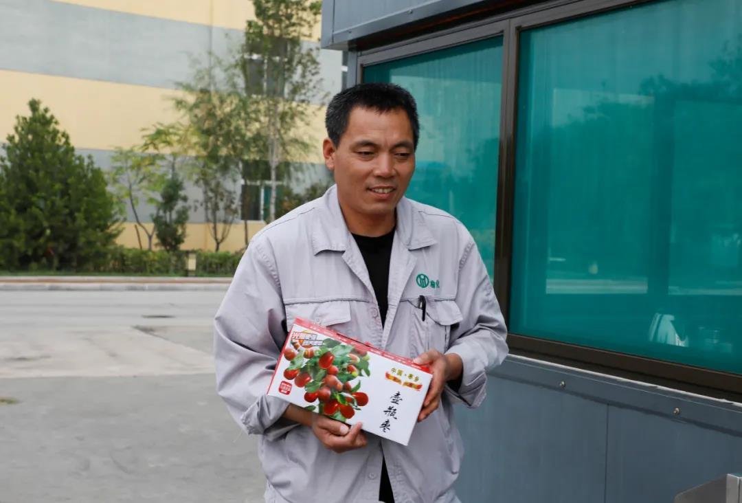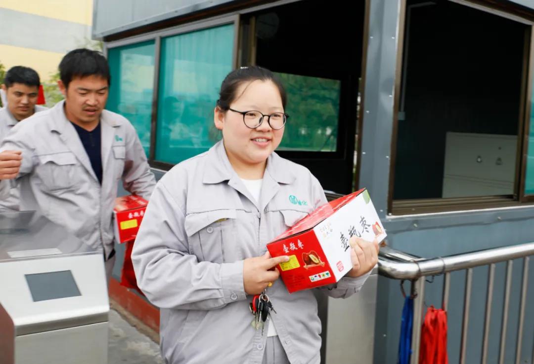 一箱箱承载着公司关怀的大枣传递到员工手中,代表着公司向每一位员工及员工家属送去的真挚问候和祝福,发放现场洋溢着一片喜庆和谐的氛围。