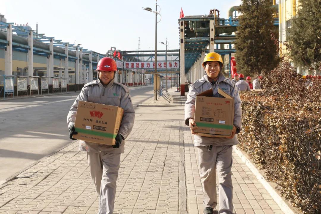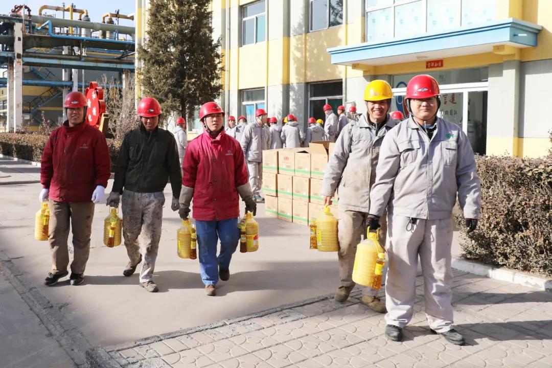 1月11日,公司继发放河套面粉、五常大米、壶瓶大枣等过节福利物品后,又为员工发放了鲁花压榨花生油。