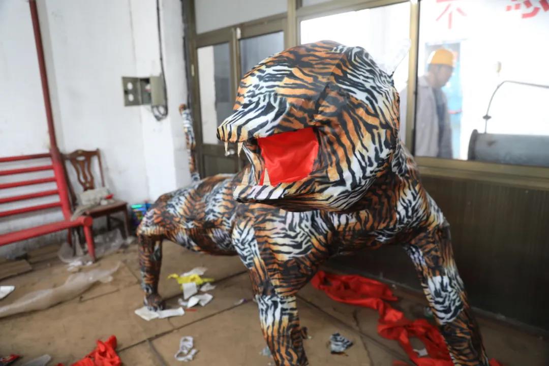 寅虎啸天升灵山,丑牛离去洗旧年。项目工程部容器车间分3人一组利用半个月闲余时间,制作出了老虎、吊车、榆化标志等经典花灯。围绕榆化主题,双手托起榆化标,灯笼上刻画中国梦,寓意着榆化在党的领导下发展腾飞。此次灯展依托废料的再次利用,有时做一对一样的灯笼,在废料堆又找不到一样的材料,这时就需要员工对废料再进行二次创作,直到一对灯笼完美呈现。花灯负责人裴海波说道:“这次活动大家都很重视,做出来的成品很有成就感,认真细致到光老虎就改版了三次以上。”他笑着说:“第一次做出来的老虎像猩猩,第二次做出来像一只狗,第三次发现缝上布,有了皮更像点,我们也没有什么经验,就是大家都说像就好了,只要有说不像的我们就一直改。”初次涉及花灯制作,大家都没有经验,摸着石头过河,在网上找图片、找教程,边学边做,尽力把我们对榆化的祝福展现出来。