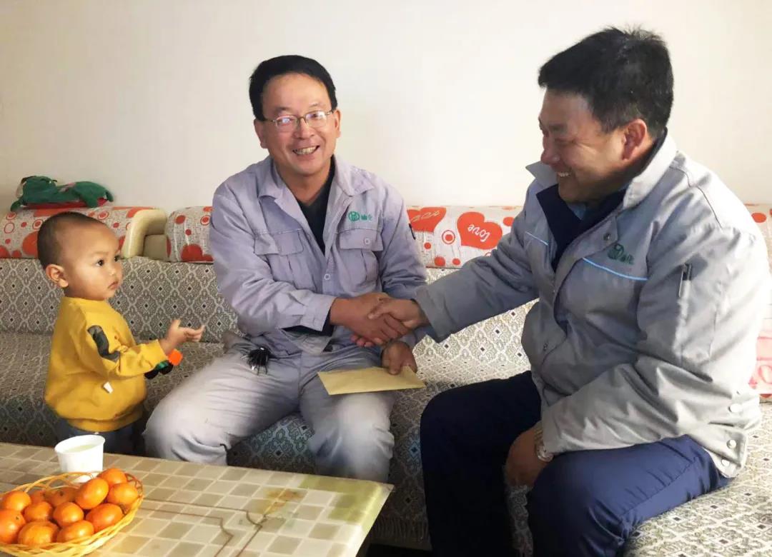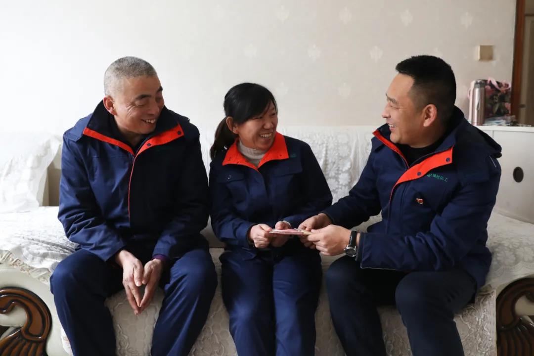 一位员工的母亲抹着泪说道:“儿子在榆化工作多年,隔三差五就往家里拿福利,引得邻居一阵羡慕。这次在生病困难的时候,公司还能够想着我们,领导能亲自来看望我们,真的很感动,感谢榆化的关怀。”