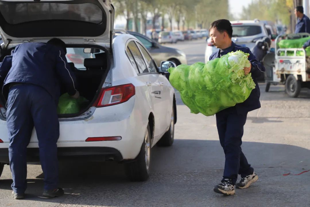 在发放现场,随处可见你来我往、手捧肩扛的情景,洋溢着一片温馨和谐的氛围,沉甸甸的福利品捧在手里,暖在心里,更加坚定了大家立足本职岗位,创造更好业绩的信心和决心。员工们纷纷表示:“冬天家里放些大白菜,就觉得心里踏实,可以炒着吃、蒸包子、做饺子都不错呢。”