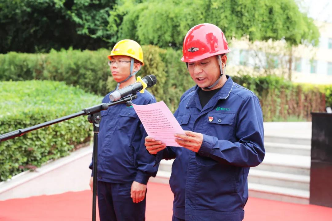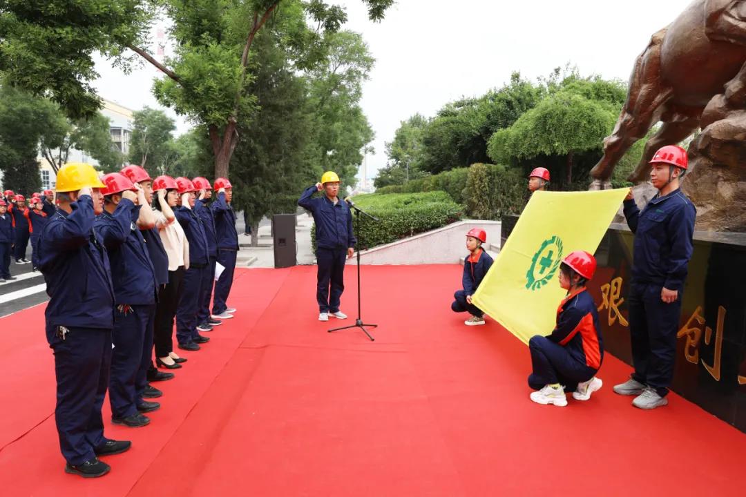 第二项,由公司安环部副部长赵剑锋带领员工代表面向安全旗作安全宣誓。