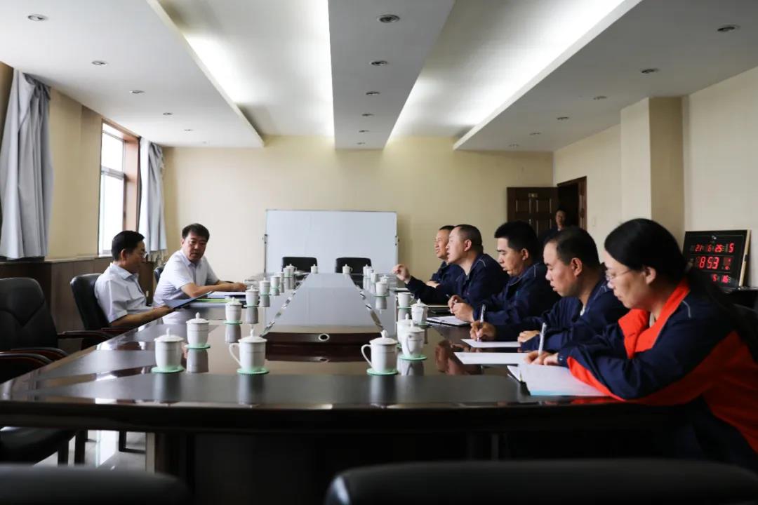 在公司二楼会议室,县领导听取了安环部部长王柱军对当前公司安全环保工作的汇报。