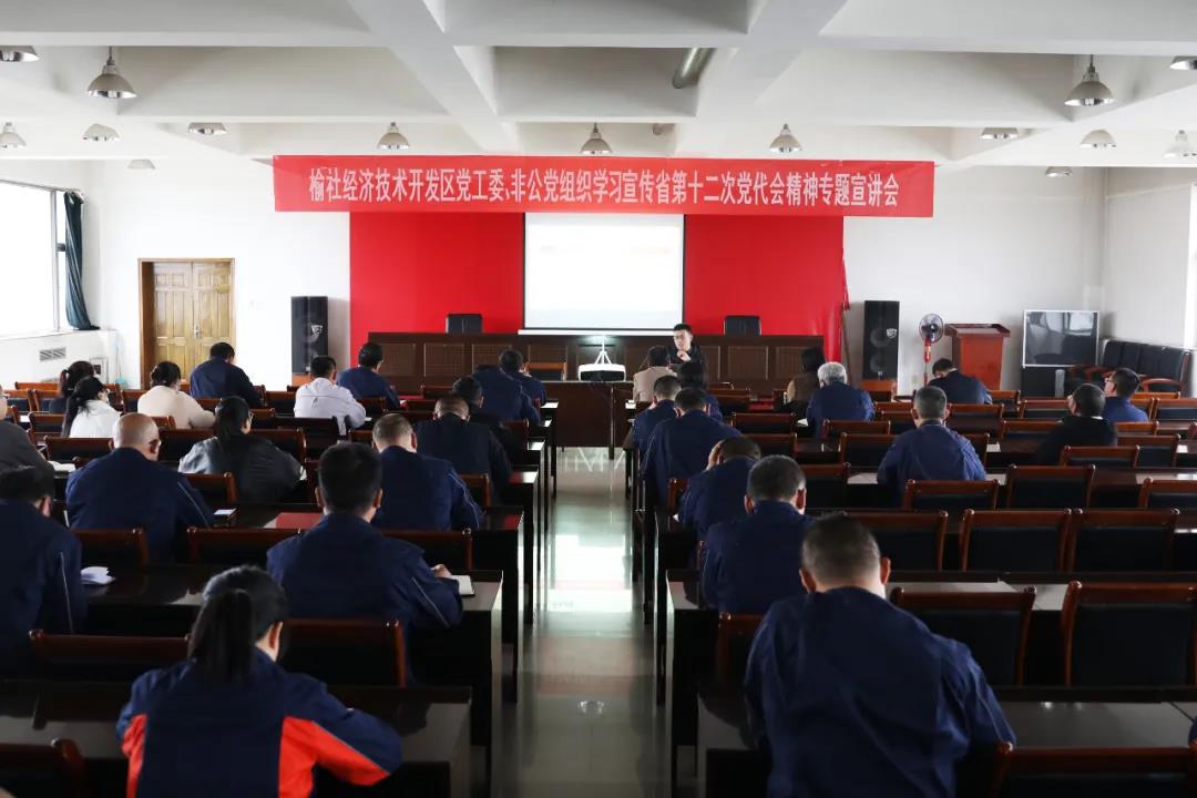 11月5日,榆社经济技术开发区党工委、非公党组织学习宣传省第十二次党代会精神专题宣讲会在我公司五楼会议室举行。