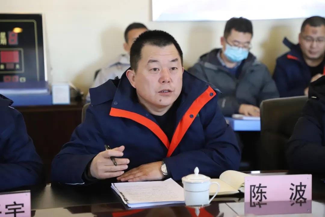 在二楼会议室,总经理陈波向考核组汇报了学习习总书记安全生产重要论述和指示批示精神及公司消防安全工作落实情况。
