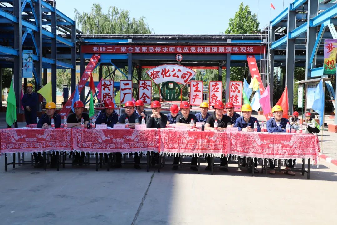 演练模拟树脂二厂在聚合釜紧急停水断电超温超压导致法兰泄露后,演练指挥部现场启动紧急救援预案,在岗人员发现问题后迅速上报当班运行班长,由班长上报调度人员和总指挥,由总指挥统一调度,启动应急响应机制、进行事故现场管控、联系各部门赶赴现场展开救援工作、消防灭火、事故现场清理。最终,在各应急处置小组的相互配合下,科学有序高效的完成应急演练,取得了预期效果。