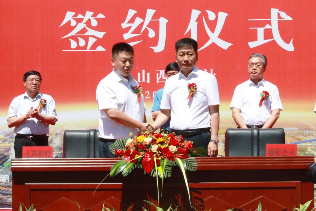 在县委、县政府、县经济技术开发区相关领导和员工代表的共同见证下,榆化公司·太药控股原料药战略合作项目胜利签约。