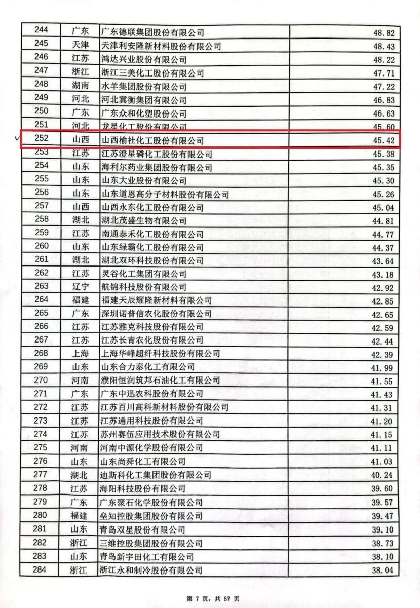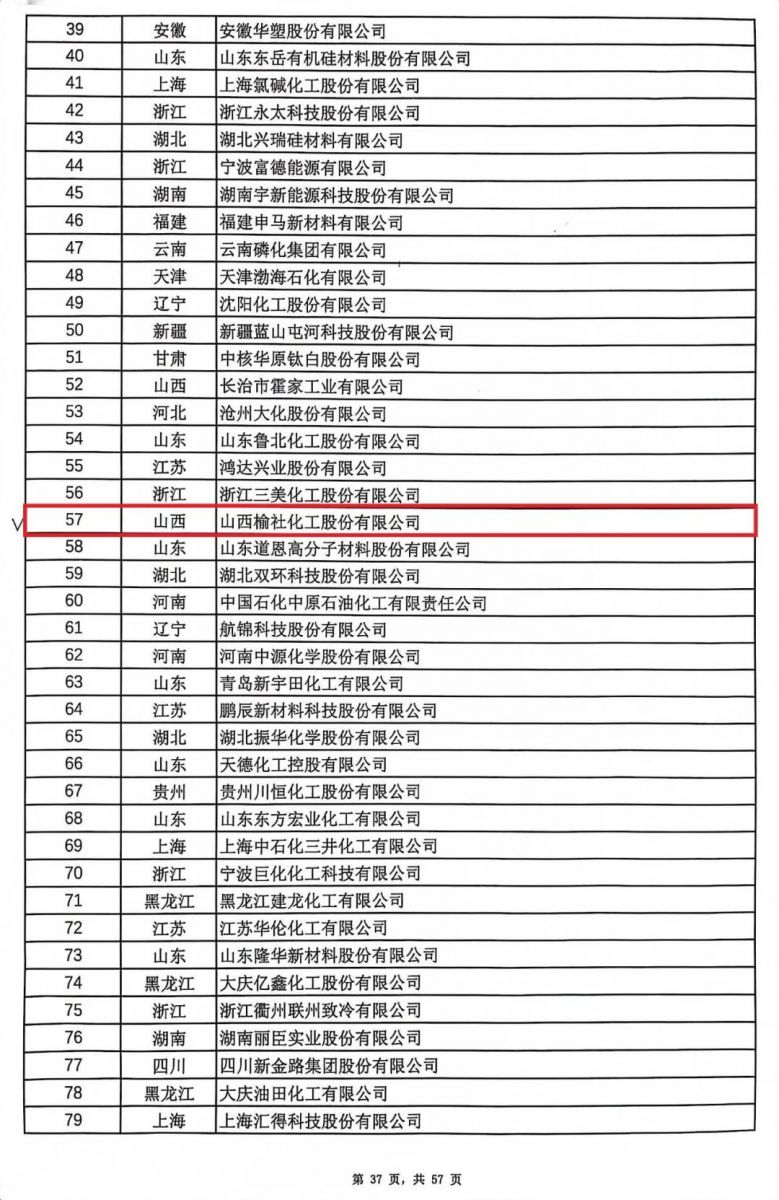 榆化公司在2023中国石油和化工企业500强排行榜位中位列252位,在2023年基础化工原料企业100强中位列57位。