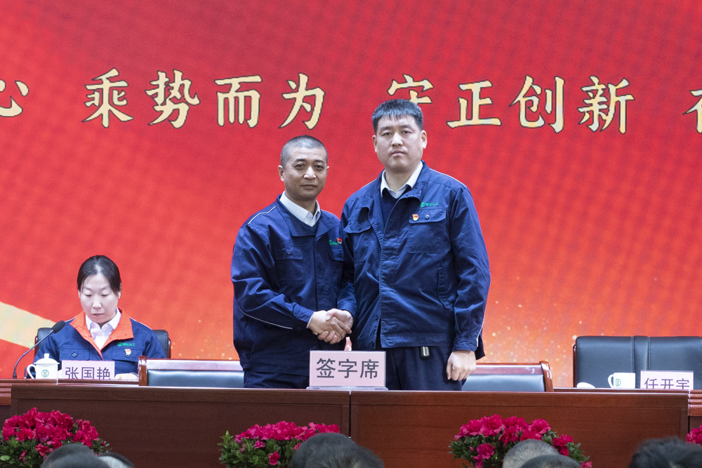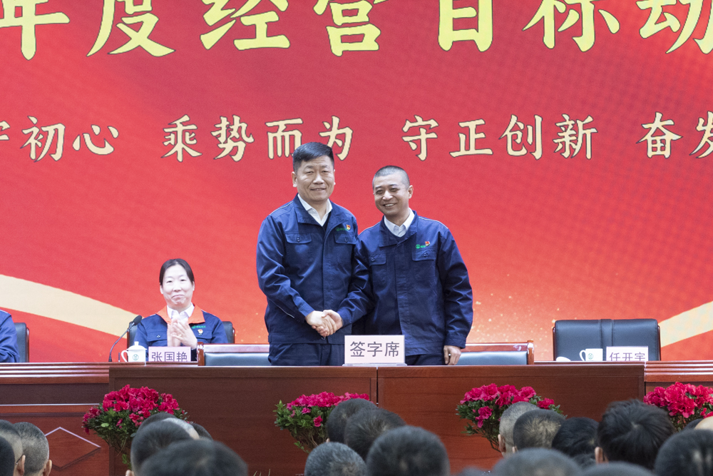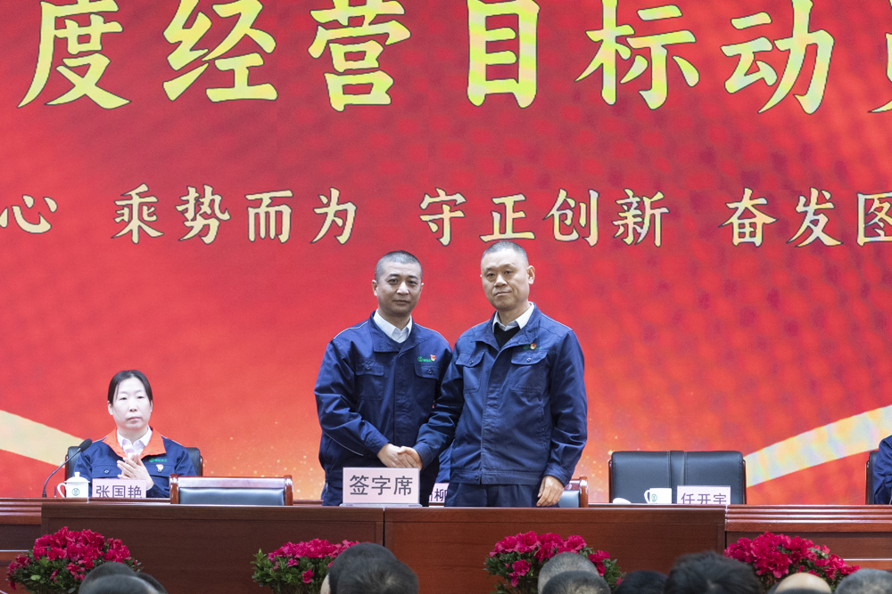 公司党委书记、董事长杨柳青分别与总经理、财务总监、人力资源负责人签订目标责任书,党委副书记、总经理任开宇分别与总工程师、山西榆化精细化工有限公司法人代表、榆社县远安物流有限公司负责人签订目标责任书。