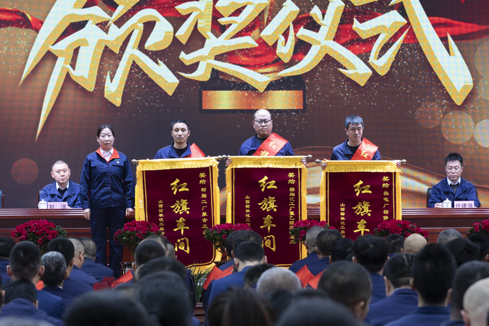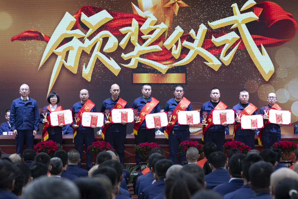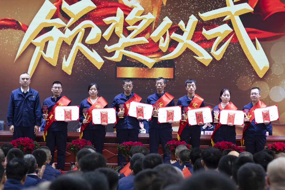 大会对2024年度各条战线上工作业绩显著、贡献突出的47名优秀员工、14个先进集体,在晋中市“五小竞赛”中获奖的8名员工、荣获发明专利的2名员工,在保障生产安全稳定运行中做出突出贡献的管理团队及个人进行了隆重表彰。