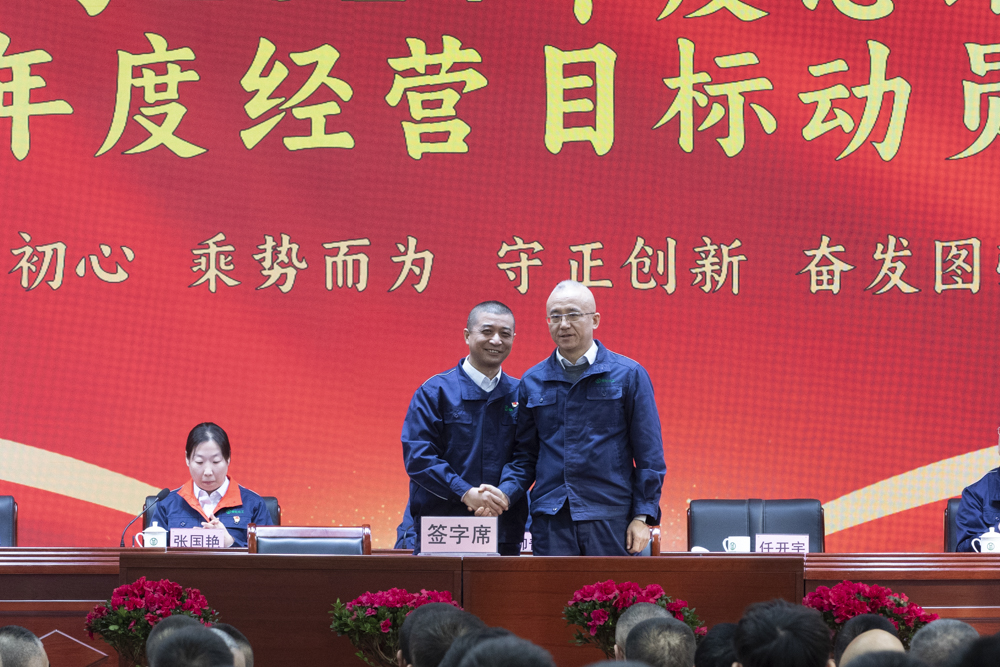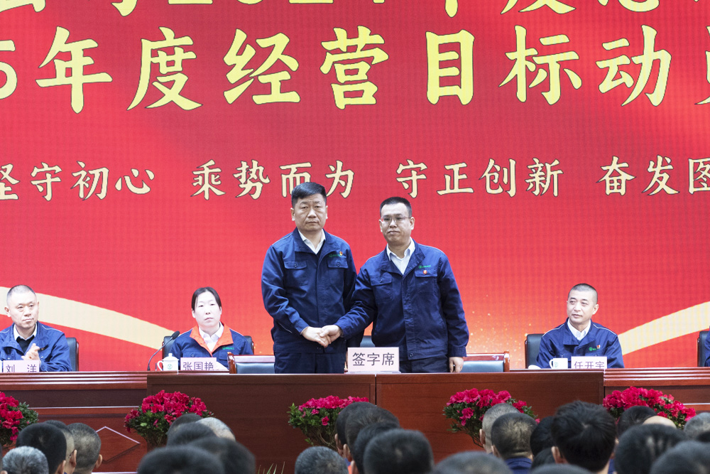 最后,杨柳青发表了重要讲话,对过去一年来取得的成绩给予充分肯定。他指出,2024年,我们走得很艰辛,有市场低迷的无奈,也有改革创新、攻坚克难的不易。在市场持续低迷的严峻形势下,全体干部员工精诚团结、迎难而上、主动担当,明确制度、人才、文化三大体系建设,突出强化管理主基调,推动安全、生产、经营等基础管理规范化、科学化,基本盘更加牢固,发展脚步更加扎实,圆满完成生产经营各项既定目标,保持了稳中有进、稳步提升。