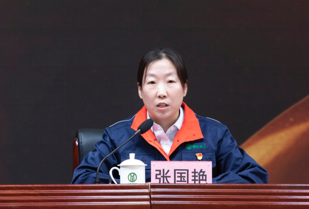 党委副书记、副董事长、财务总监张国艳为红旗车间颁奖