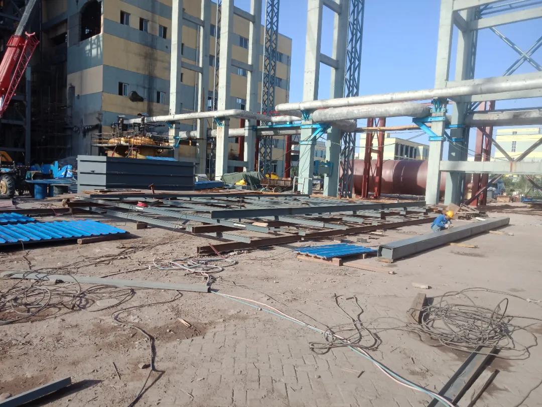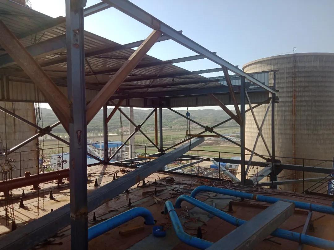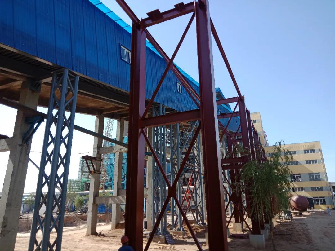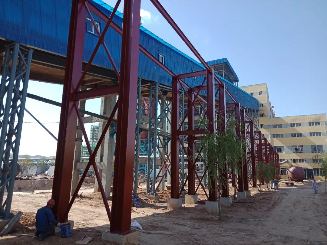 1、蒸汽管架安装基本完成,正做防腐油漆