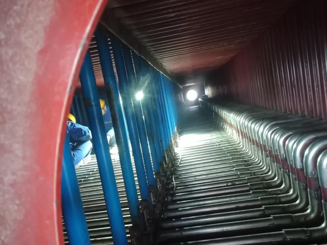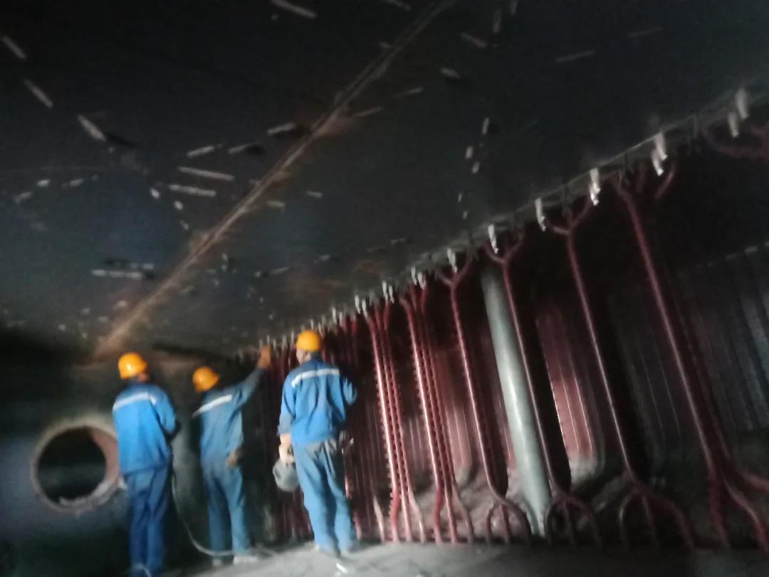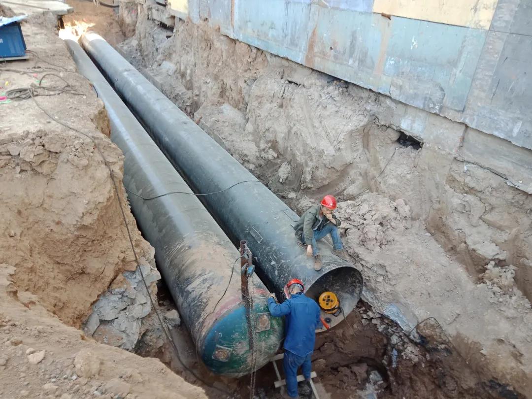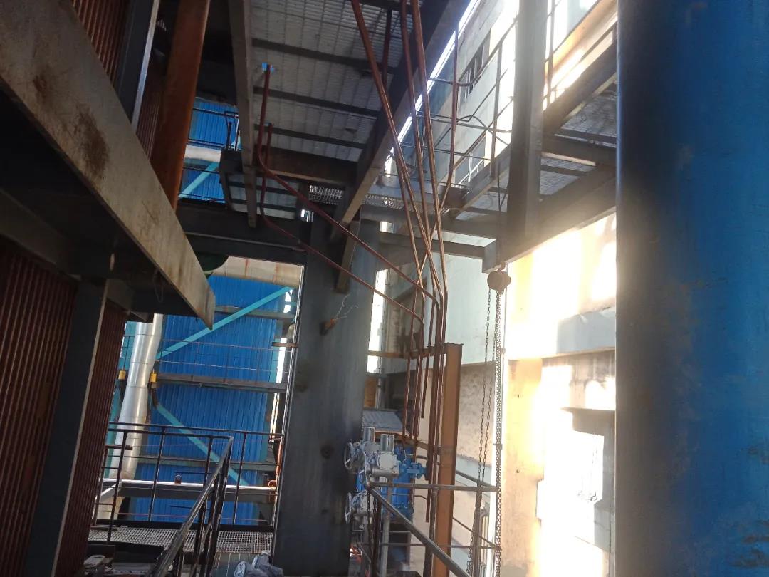 1、蒸汽管架安装基本完成,正做防腐油漆